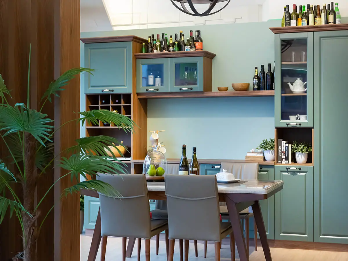 走進綠的傢俱,以尊爵綠為主色調的餐廳空間,透著神秘又古典的異國氛圍;再往裡走...